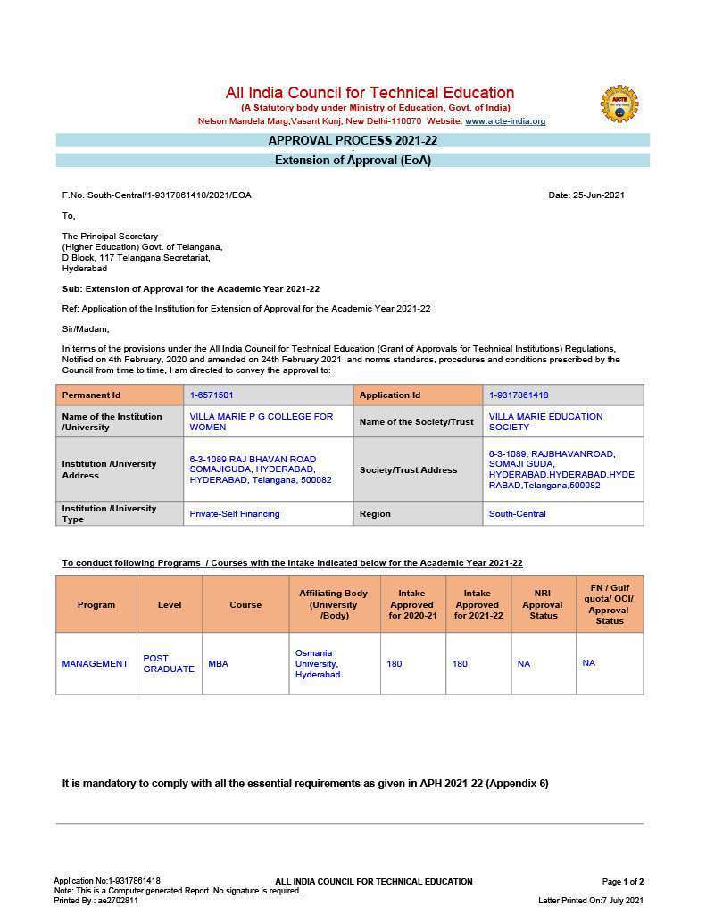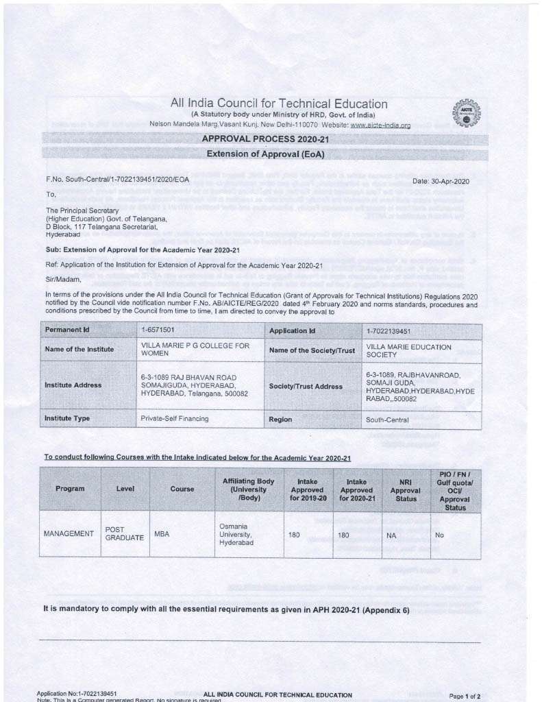 (Affiliated to Osmania University, Management Programs Approved by AICTE)