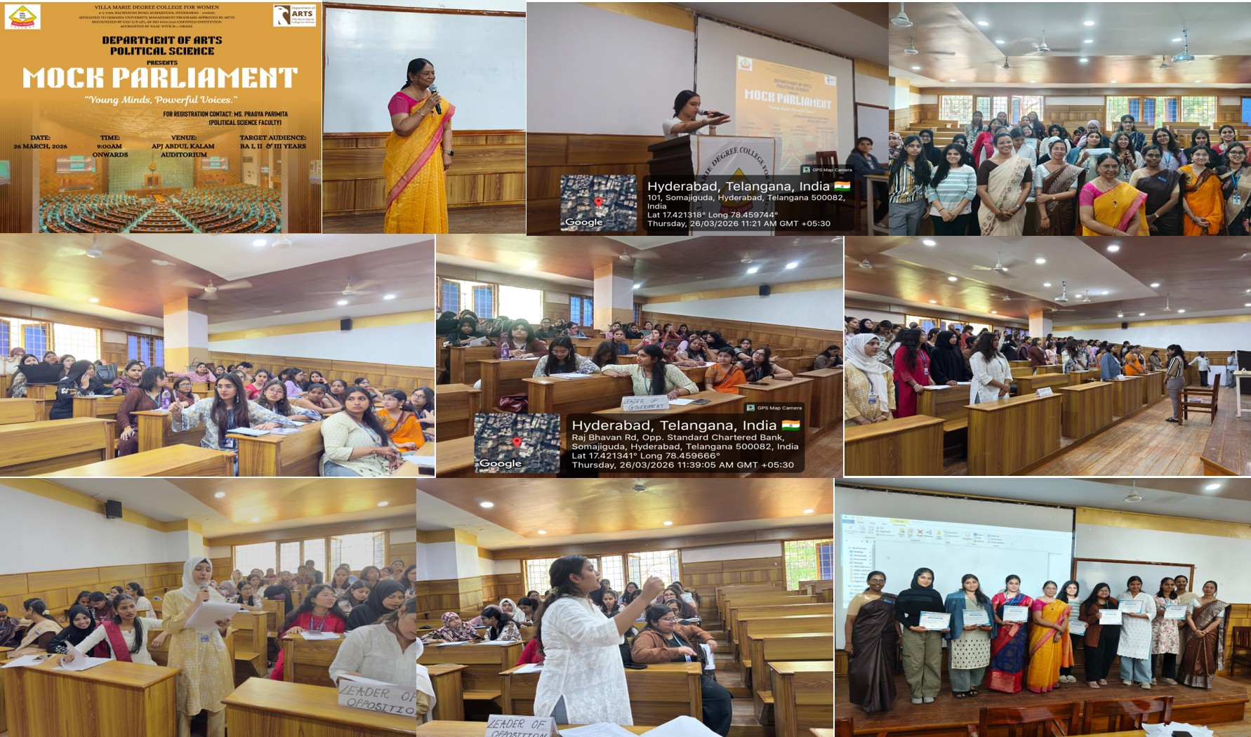 - 26th March 2026, Department of Arts (Political Science) organized a Mock Parliament on the theme “Young Minds, Powerful Voices,” providing students with a platform to engage in parliamentary procedures, debate, and develop leadership and critical thinking skills.